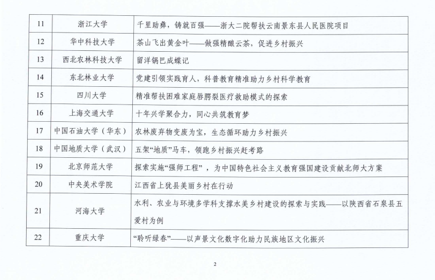 近日,教育部公布了第八屆教育部直屬高校精準(zhǔn)幫扶典型項(xiàng)目推選結(jié)果,重慶大學(xué)報(bào)送以及參加的3案例全部入選。入選項(xiàng)目數(shù)與另一高校并列第一。