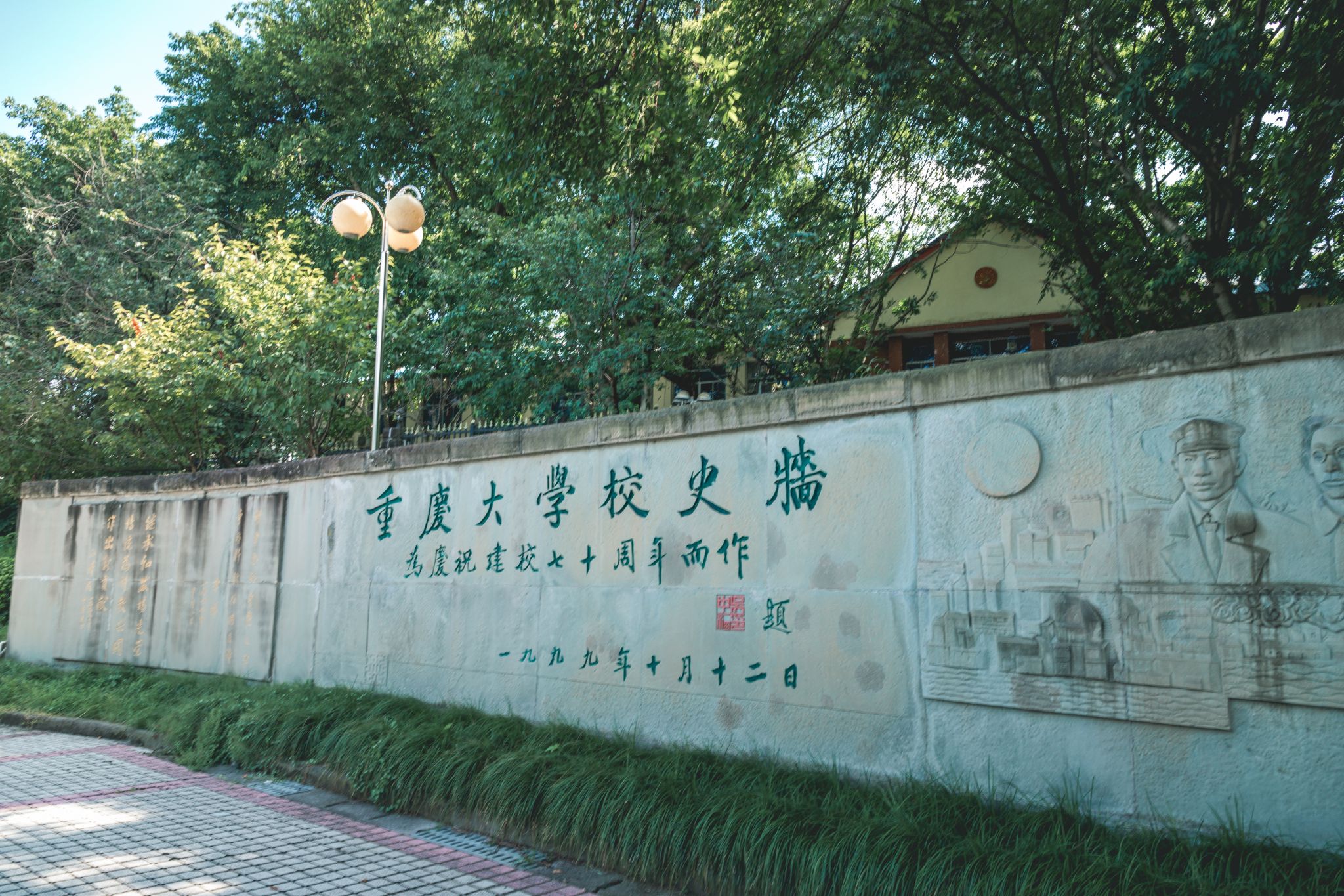 風(fēng)雨操場緊鄰學(xué)校后門,位于新建的重慶大學(xué)主教樓背后,是依地勢而建的半環(huán)形露天劇場,坡面為觀眾席,主要作為歌舞之大劇場、及大型演講、報告場所,風(fēng)雨操場后圍墻壁是重慶大學(xué)校史墻,介紹重慶大學(xué)1929——1999年七十余年來歷史畫面。